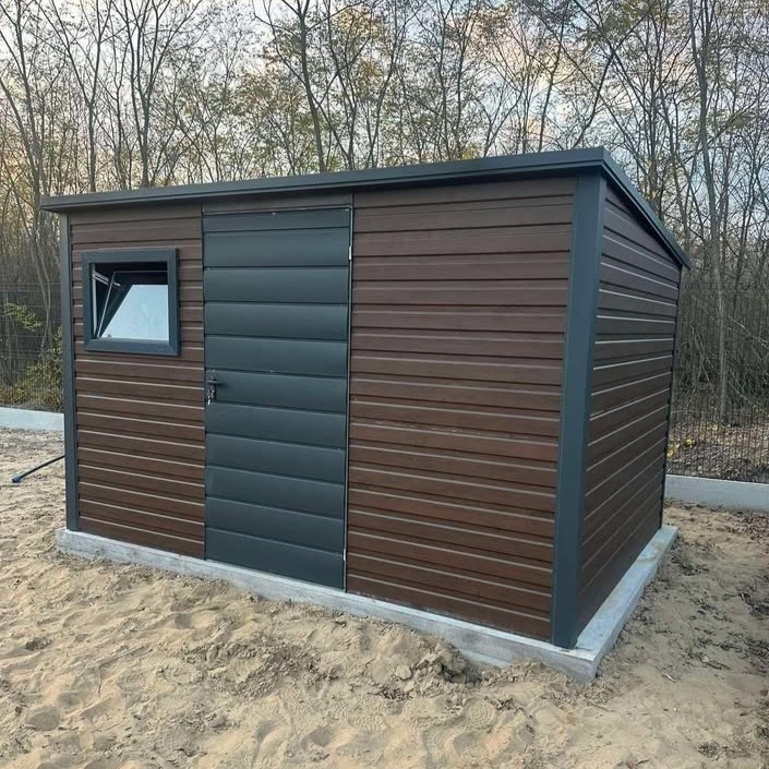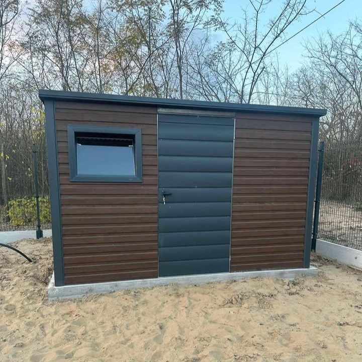 Różne opcje kolorystyczne blachy pozwalają na idealne dopasowanie domku narzędziowego do wyglądu reszty ogrodu, tworząc spójną i estetyczną przestrzeń. Jego montaż jest szybki i łatwy, a trwałość materiałów zapewnia długowieczność konstrukcji.