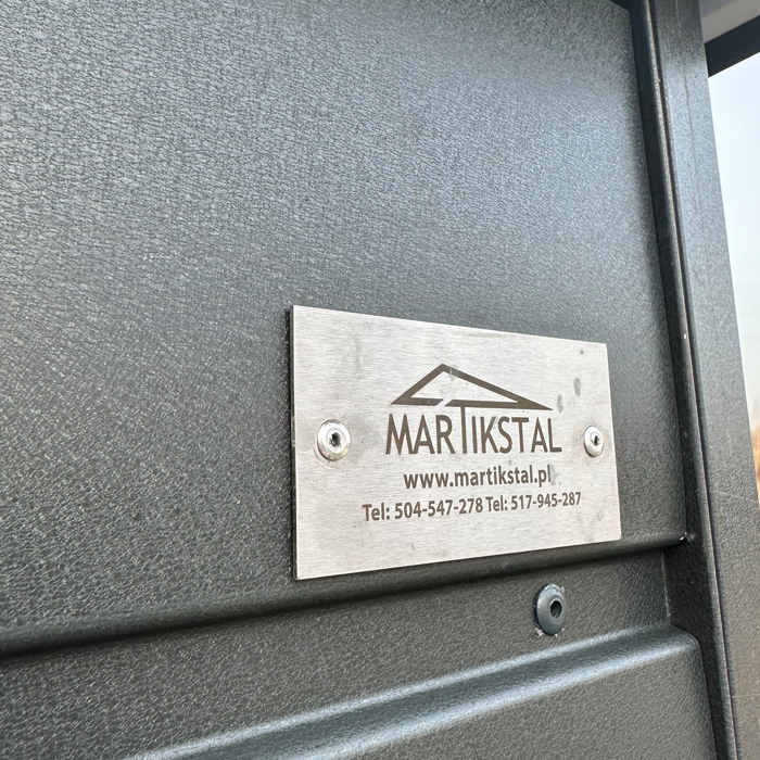 Wszystkie konstrukcje Martikstal wykonywane są z wysokiej jakości stali ocynkowanej lub blachy malowanej proszkowo, co zapewnia odporność na korozję, opady deszczu, śnieg oraz promieniowanie UV. Dzięki temu produkt zachowuje estetyczny wygląd i pełną funkcjonalność przez długie lata.