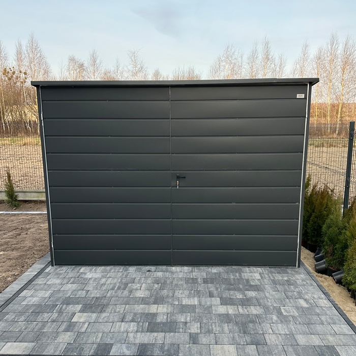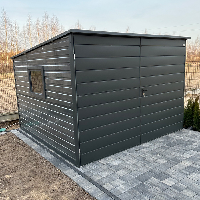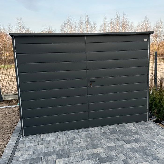 Garaż 3×3 m- dach ze spadem w tył – kolor: grafit mat
